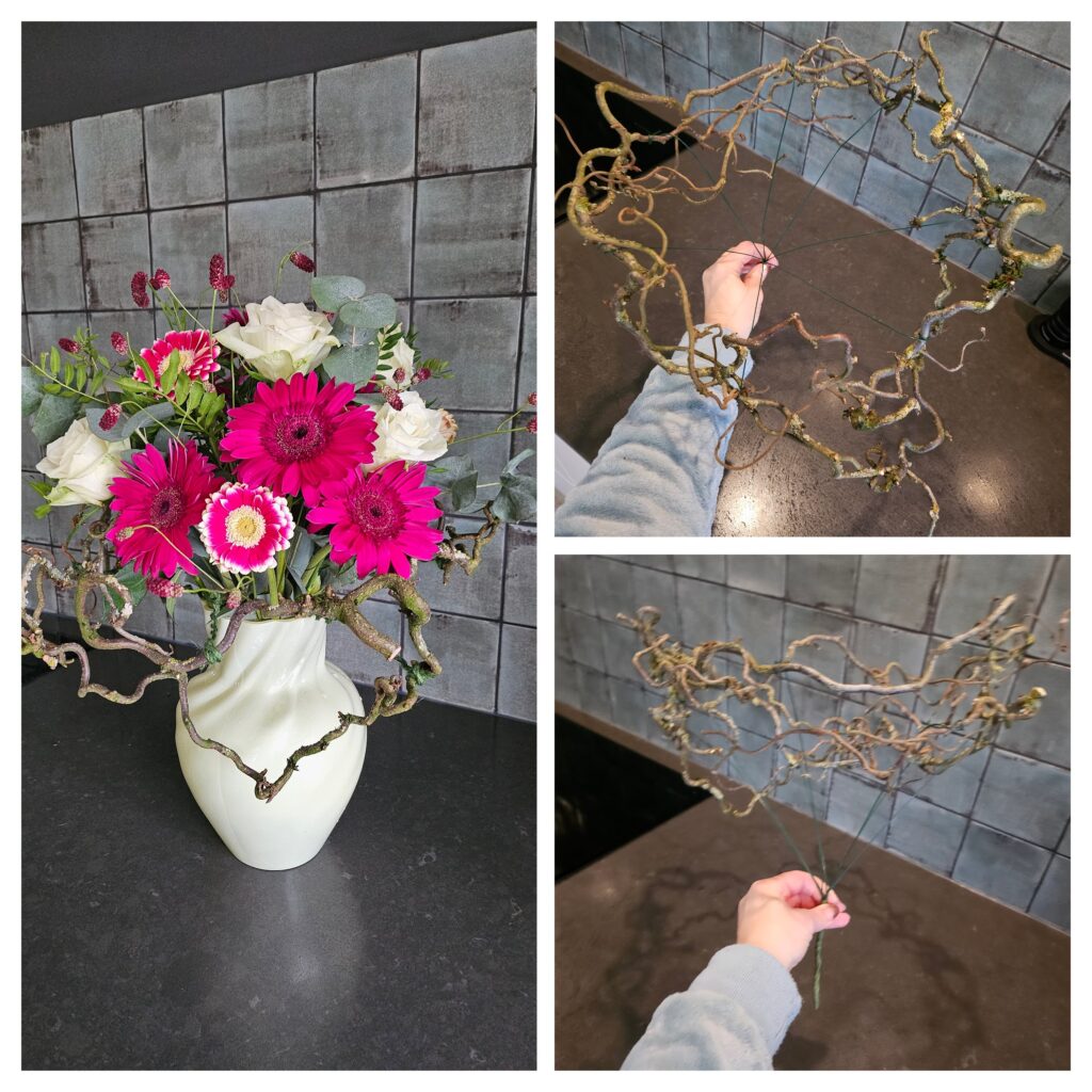 Frame van Hazelaar takken met boeket.